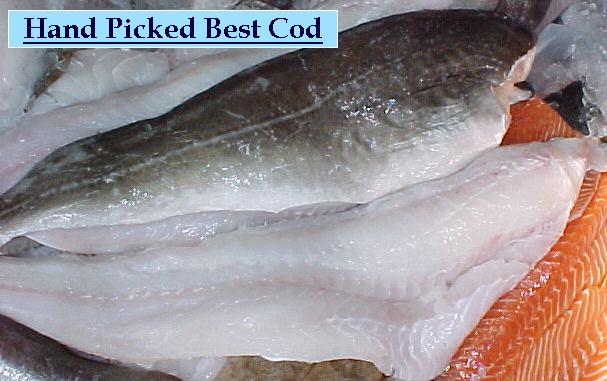 This one is fresh cod fillet on ice, notice the faint white line running along the side: