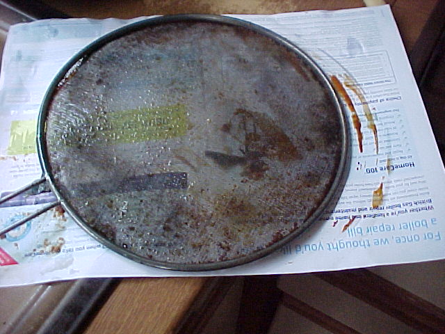 To stop hot oil splattering all over the hob it’s a good idea to use a wire mesh splatter-guard to cover up while frying. Any water from rinsing the fish will boil and crackle causing tiny specs of hot oil to splash out of the pan. A sheet of paper to act as a trivet for the splash guard saves on cleaning later.