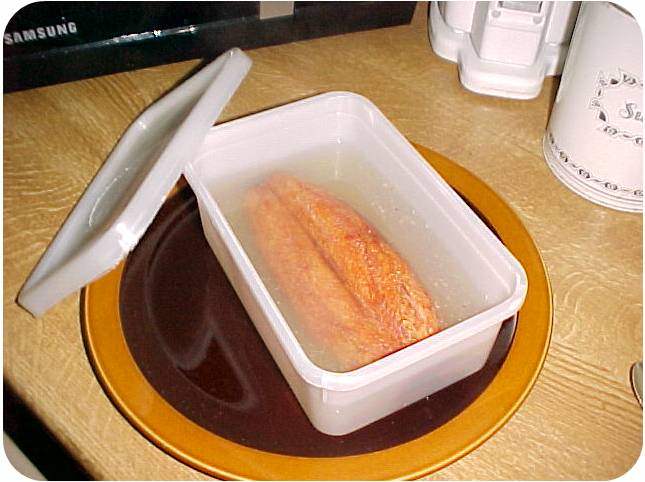 My filleted kippers are vacuum packed for freshness but are not ‘boil-in-the-bag.’ Remove them from the bag and place in a microwave container and cover with boiling water & a lid. Alternatives are simmered in a pan of water for five minutes or grilled very very gently for five mins.