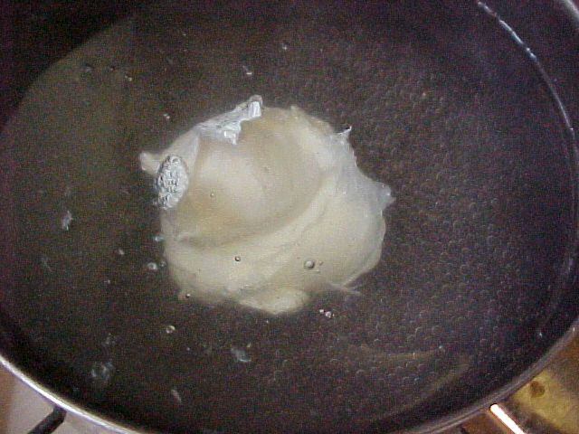 Poaching for eight minutes is the recommended method for smoked fillets. Microwave a mug of milk (for a small pan)  for about one and a half minutes while you boil the kettle. Place the fish in a suitable saucepan that’s just big enough, or for a family meal a large deep frying pan is ideal. Then a dash of water in the pan so you can warm it up on a low heat. Place the fish in the pan, pour in the milk and top up with boiling water to just cover the fish and bring back up to the boil. As it starts to bubble turn the heat down so it just simmers then start your timer for the eight minutes. You now have time to prepare the icing-on-the-cake which is a poached egg. Some flavours go together perfectly and a poached egg atop smoked haddock adds that special ‘something’ to the meal. To prepare a poached egg that doesn’t look like it was cooked in the washing machine you should warm the egg before breaking it into the water. Straight out of the fridge means the egg will take more time to start cooking so giving it the chance to spread around the pan, adding a teaspoonful or vinegar and/or swirling the water with your pudding spoon & dropping the egg into the middle are regular techniques to solve the problem but what I usually do is to lower the full egg into the pan of near-boiling water using a pudding spoon and allowing it to warm for around 25 seconds. Much longer and it will stick to the shell. Lift out with the spoon then a pair of marigold gloves helps to stop burning your fingers as you crack the egg as gently and low to the water as you can. It should stay nice & tight but keep the water just below boiling to stop it bubbling up & disturbing the egg. You could fit three or four in one pan using this method without them sticking together.